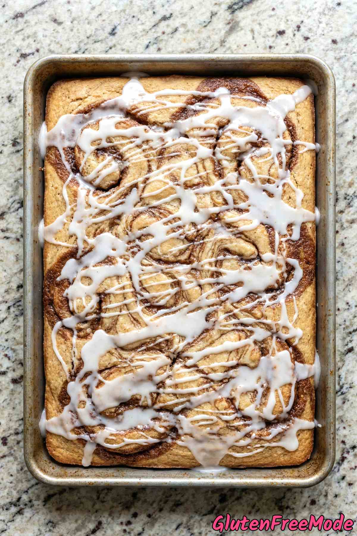 This gluten free cinnamon roll sheet cake is one of my favorite things to bake. It has all the flavors of a classic cinnamon roll but in a much easier cake form.
