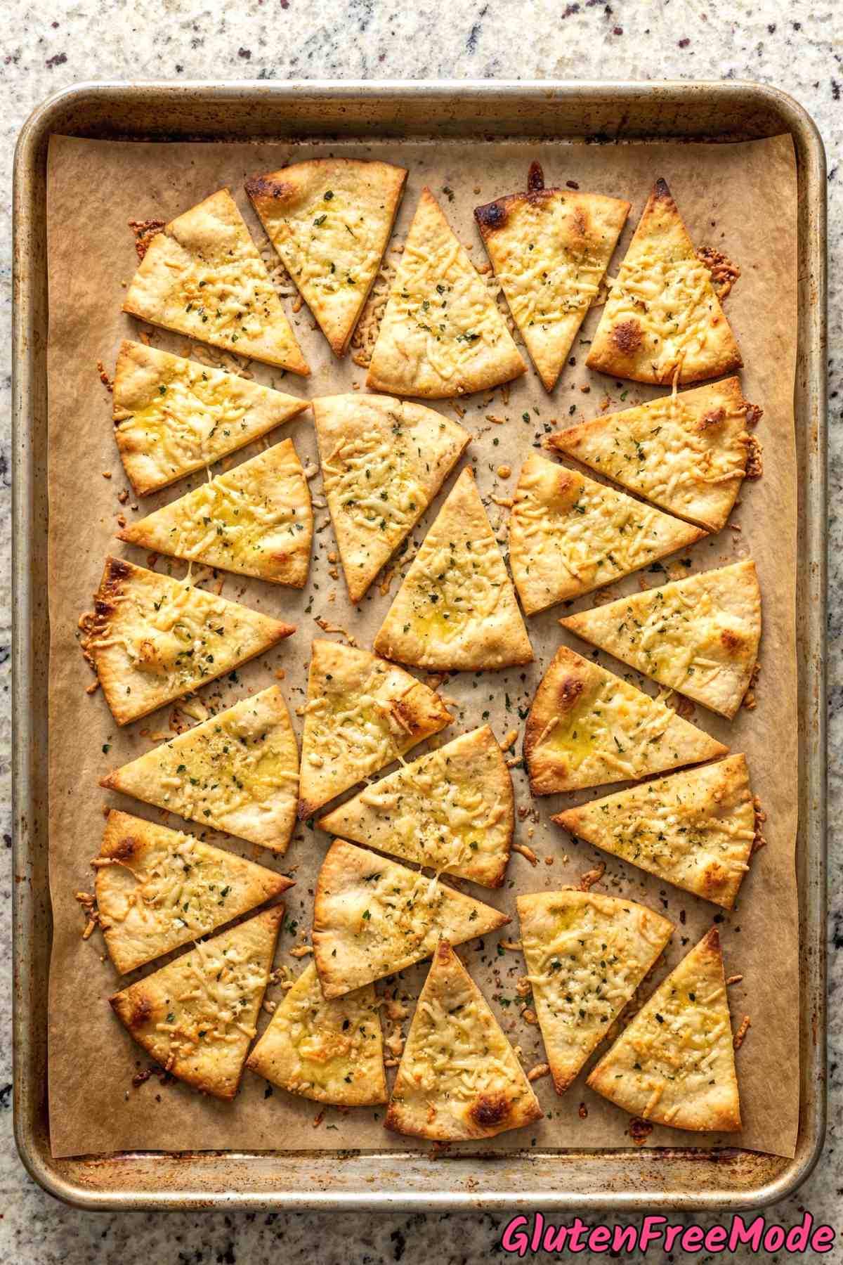 Only 5 Ingredients – You just need gluten free pita breads, olive oil, parmesan, garlic powder, and dried parsley. That’s it – simple, straightforward, and nothing weird or hard to find.