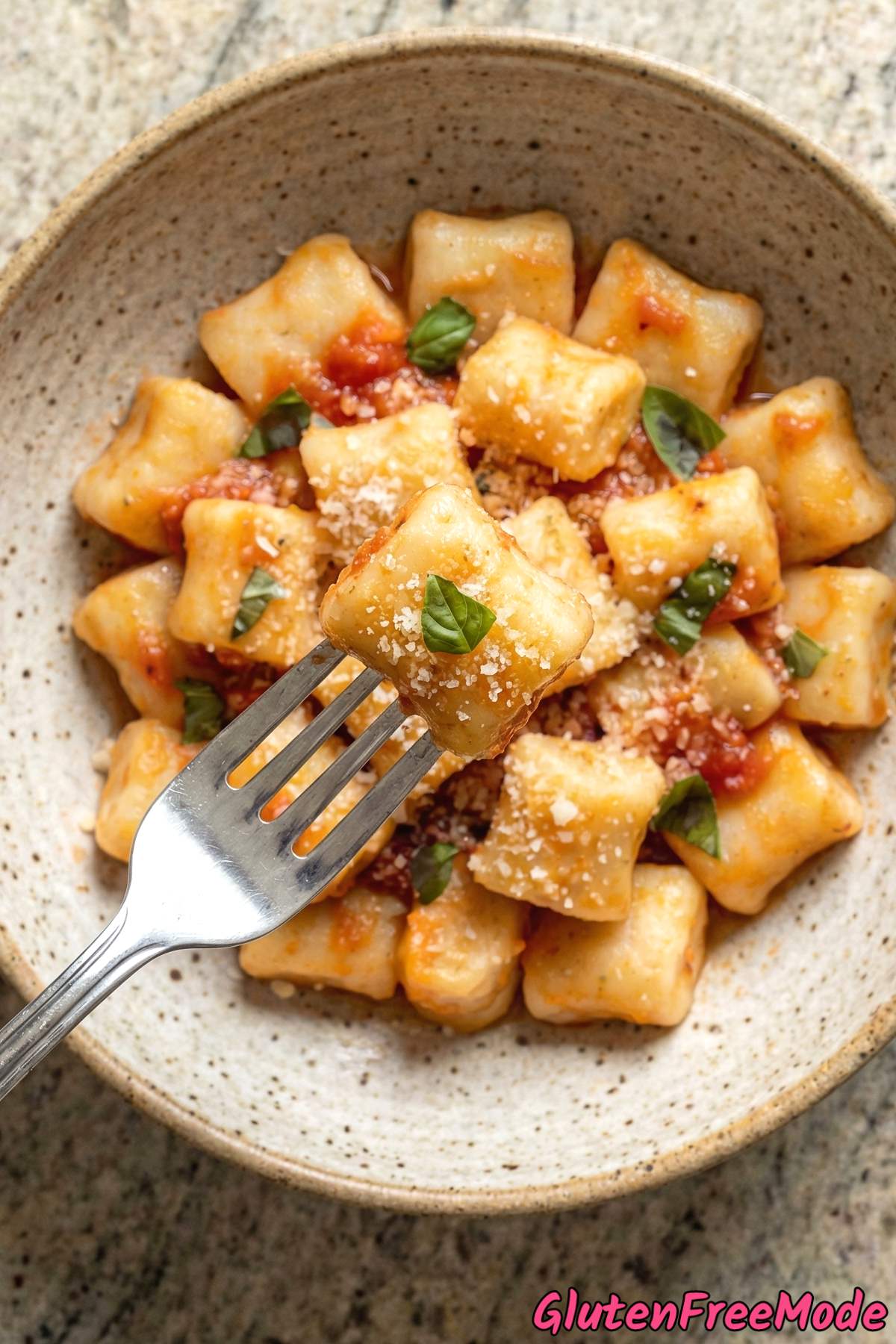 Over-kneading makes the gnocchi tough and chewy instead of light. With gluten free flour, you don’t have gluten development to worry about, but you can still overwork the starches in the potato and end up with a dense, rubbery result.