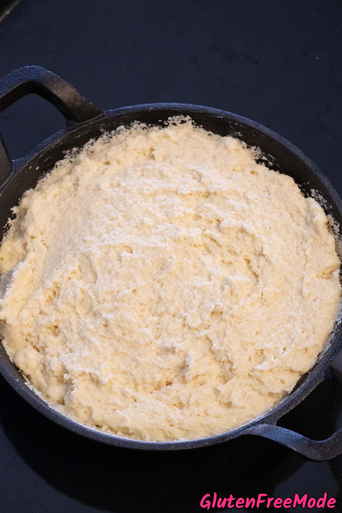 Baking it in a preheated cast iron skillet creates a golden crust while keeping the inside tender and fluffy.