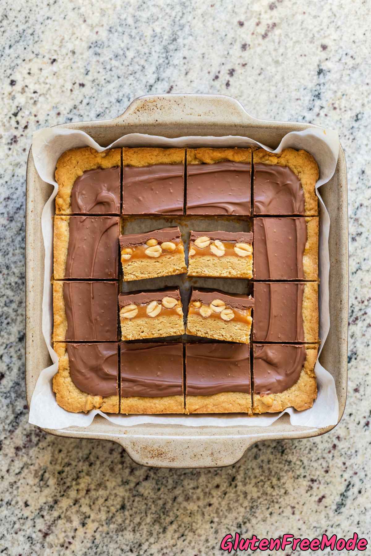 Keyword: chocolate caramel, cookie bars, gluten-free, snickers bars