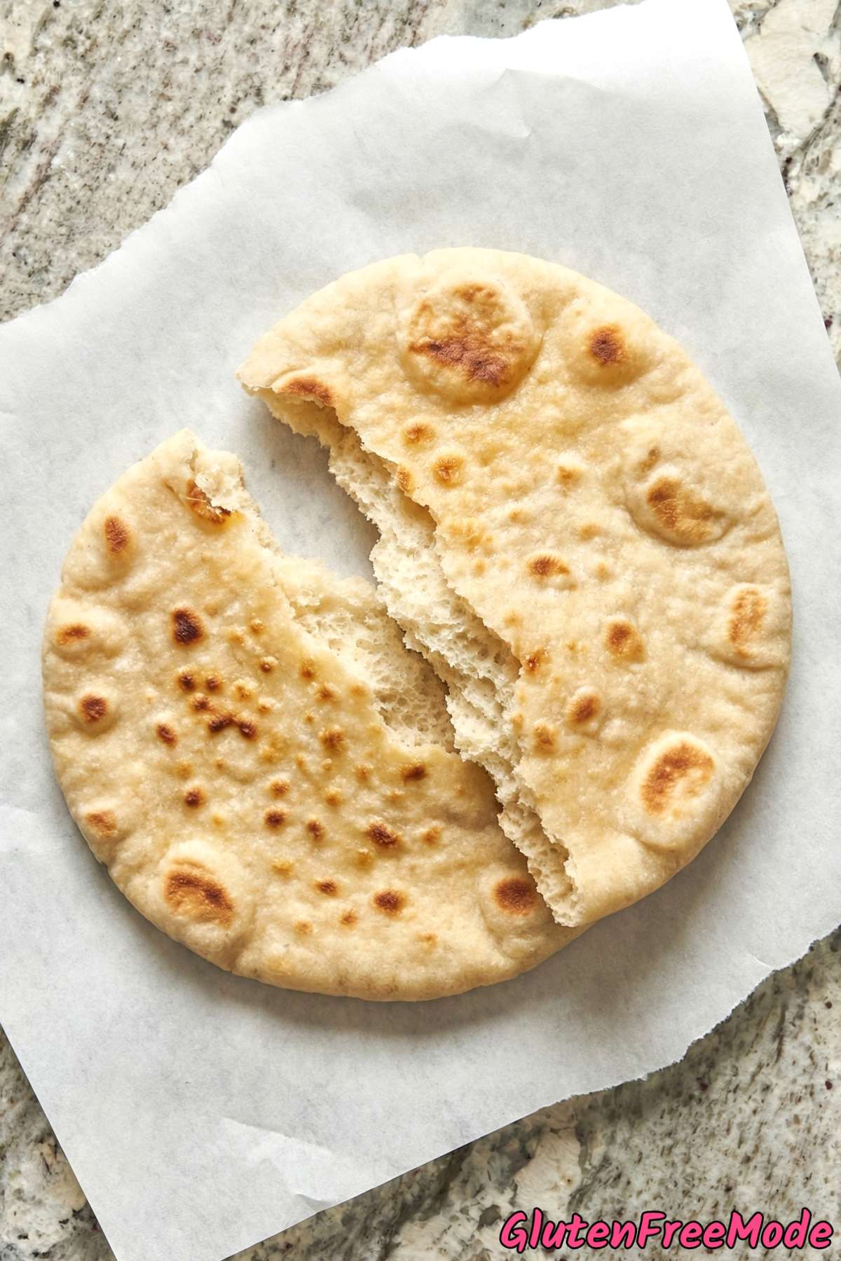 If your flour blend doesn’t already include xanthan gum, you’ll want to add about half a teaspoon to the dough. Without it, the pita can turn out crumbly and hard to fold since xanthan gum acts as the “glue” that replaces gluten.