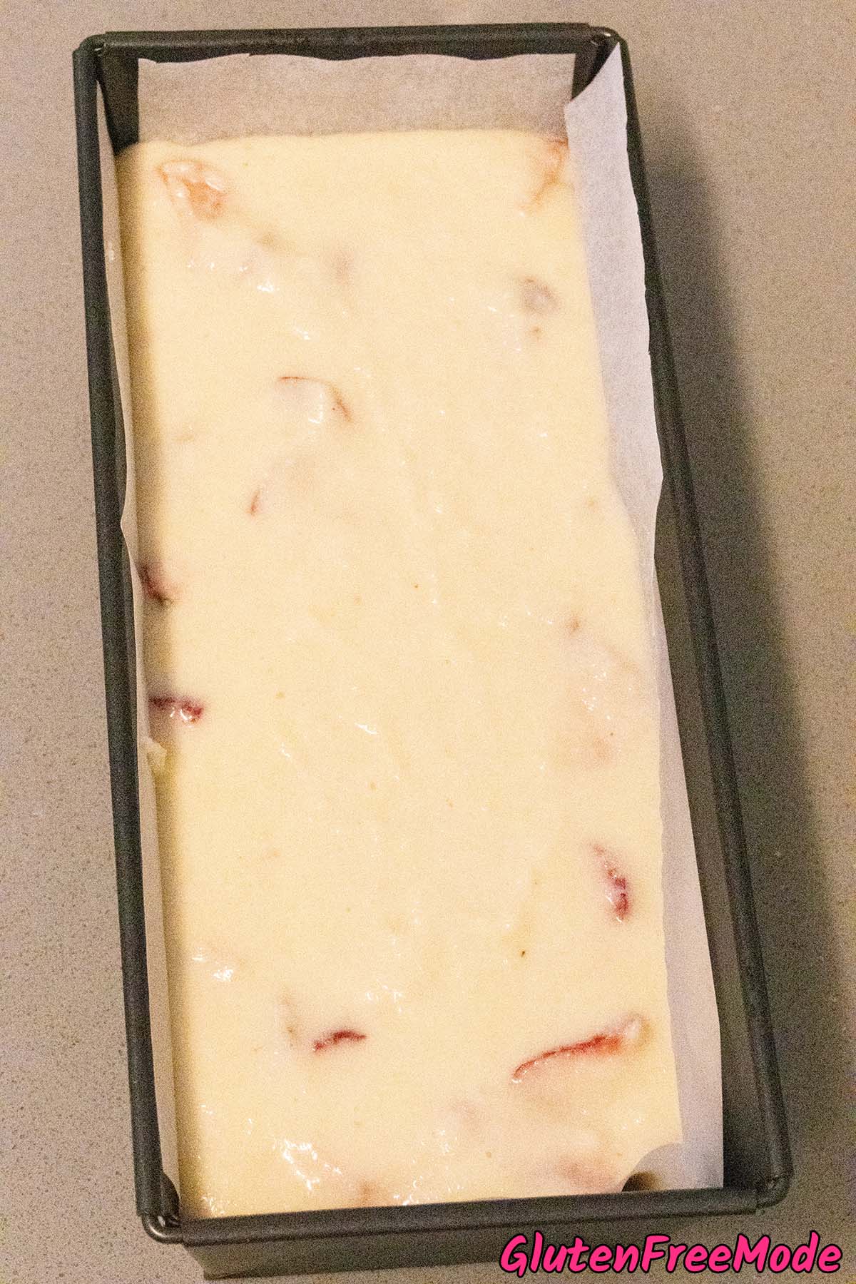 Pour the batter into the loaf pan and smooth the top with your spatula.