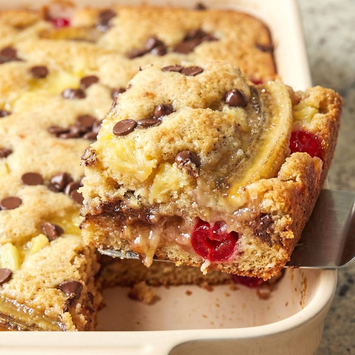 Keyword: banana split, dump cake, easy dessert, gluten-free