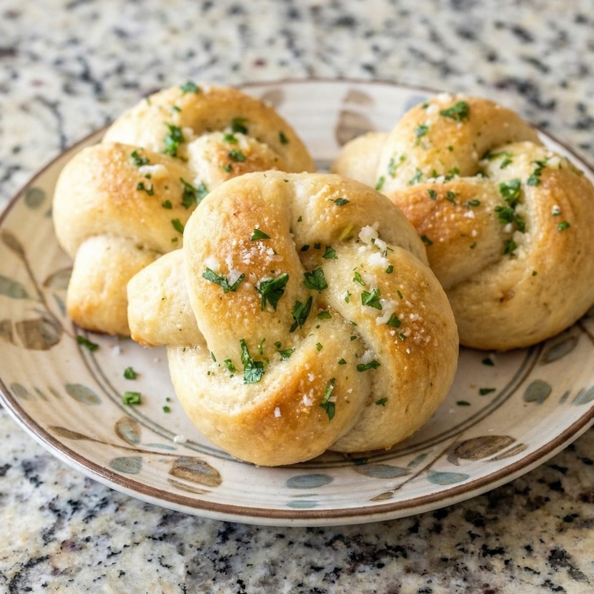 Remove the knots from the oven and immediately brush them generously with the garlic butter mixture. Serve warm.