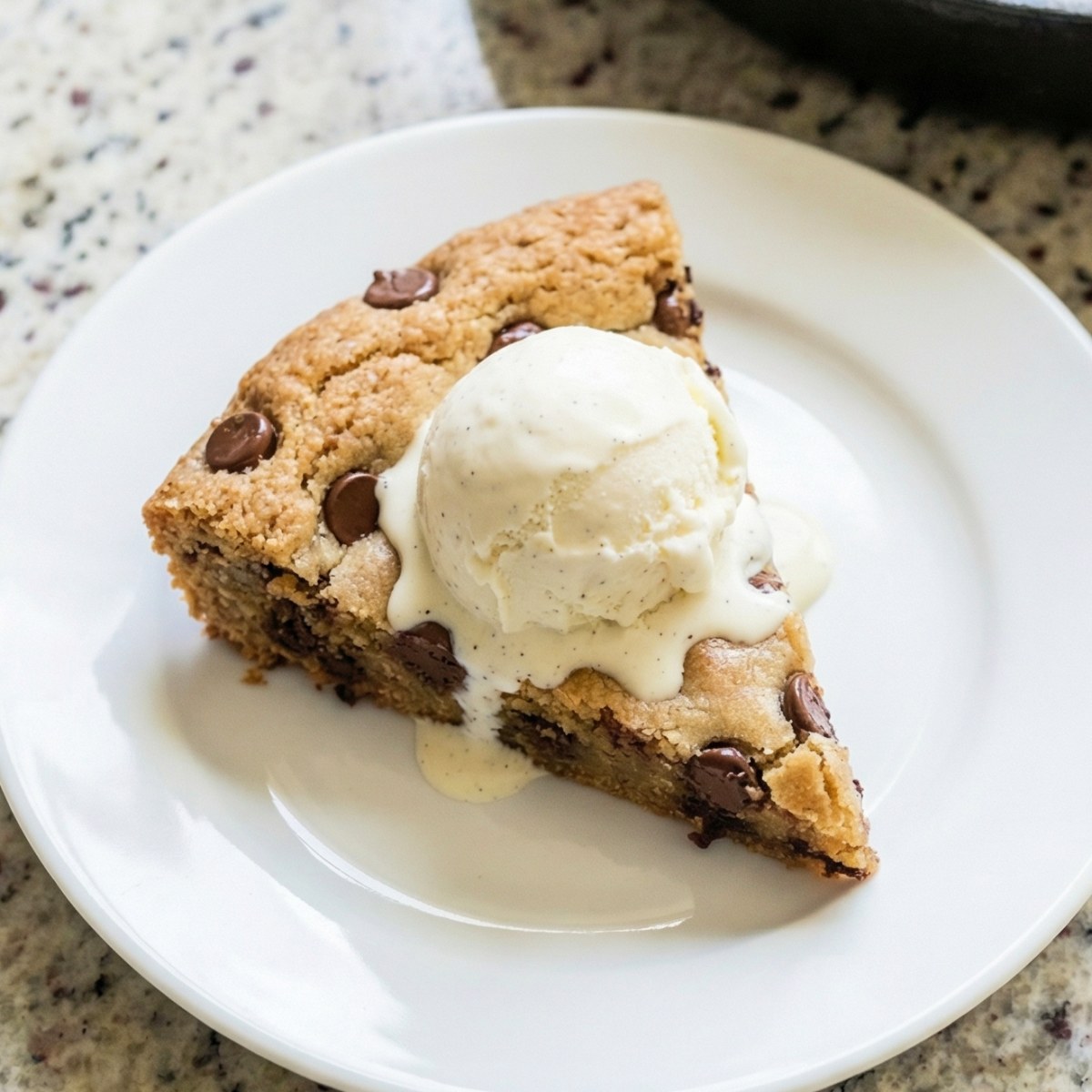 Let cool for 5 to 10 minutes, then serve warm straight from the skillet with scoops of vanilla ice cream on top.