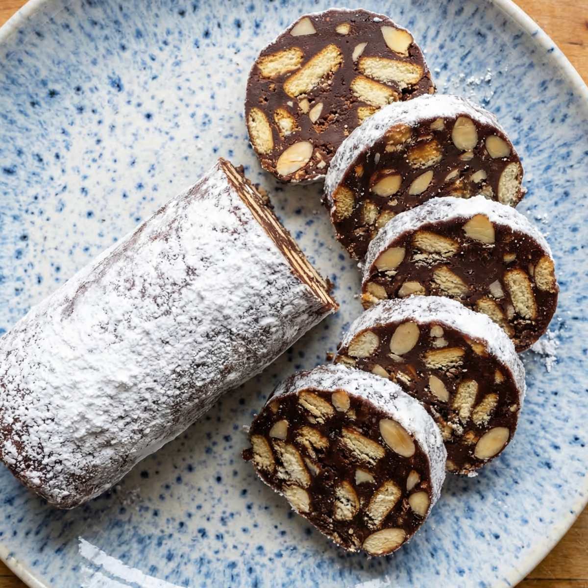Keyword: chocolate salami, gluten-free, no-bake dessert