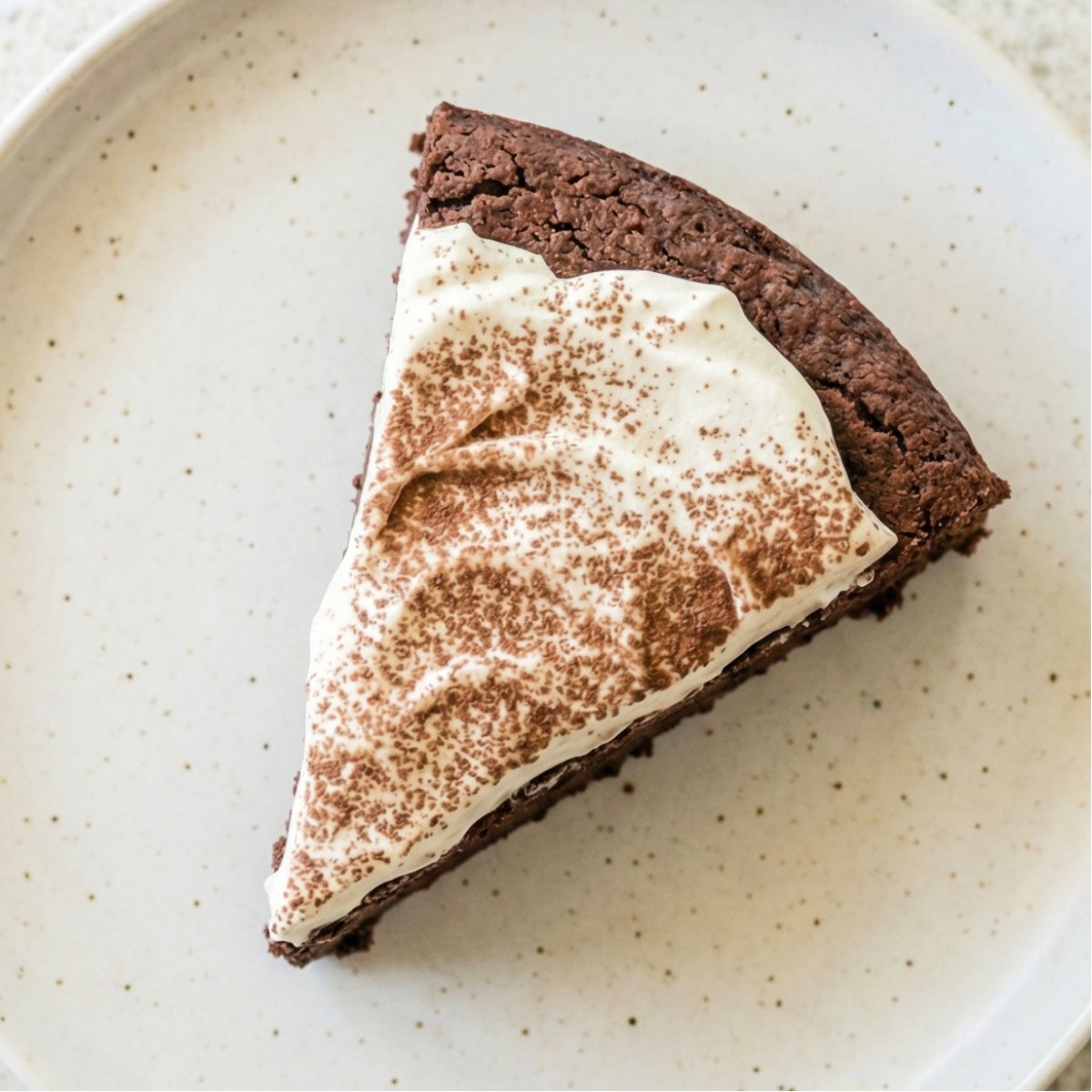 Remove the torte from the springform pan. Whip the heavy cream to soft peaks and spread it over the top, or serve a generous dollop alongside each slice. Dust with cocoa powder just before serving.