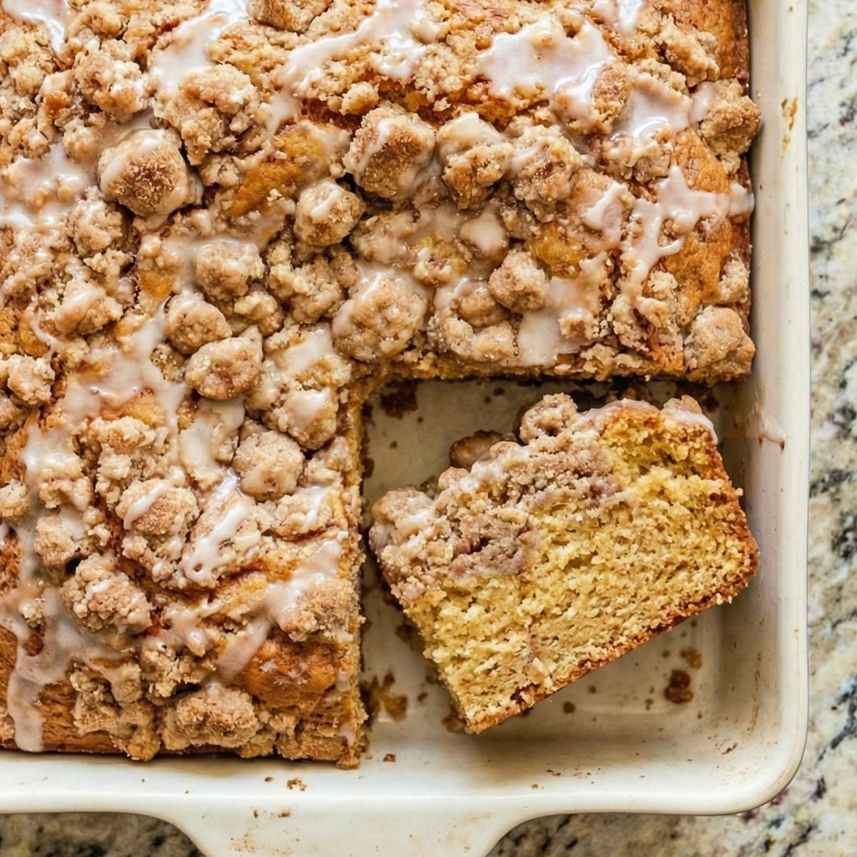 Spread the batter evenly into the prepared pan. Break the crumb topping into large pieces and scatter generously over the batter. Bake for 35 to 40 minutes until a toothpick inserted in the center of the cake comes out clean.