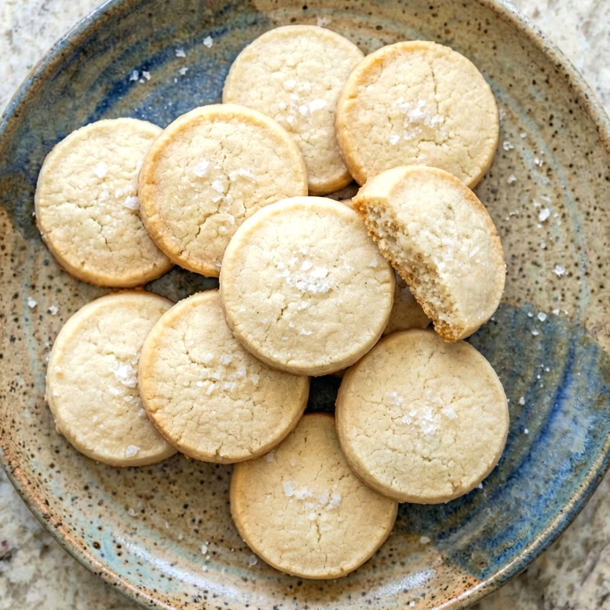 Preheat oven to 325F and line a baking sheet with parchment paper. Slice the dough log into 1/4-inch thick rounds and place on the baking sheet 1 inch apart. Sprinkle each cookie with a tiny pinch of flaky sea salt.