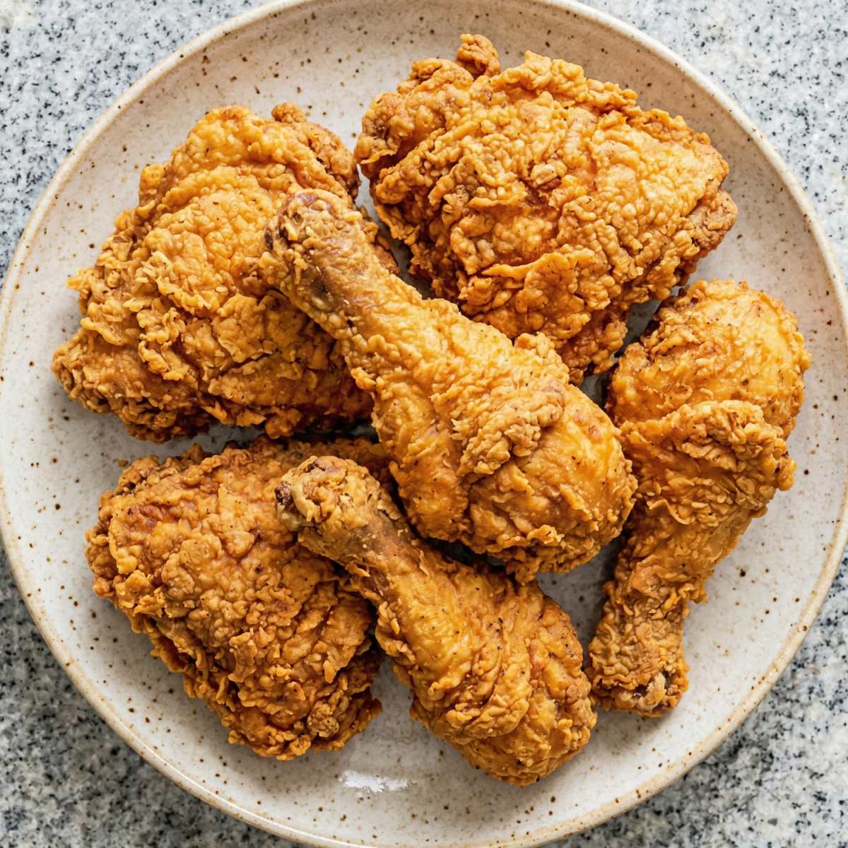 Working in batches of 3 to 4 pieces so the oil temperature stays steady, carefully lower the chicken into the hot oil. Fry for 6 to 7 minutes per side for thighs and drumsticks, or 7 to 8 minutes per side for breasts, until the coating is deep golden brown and the internal temperature reaches 165 degrees F.