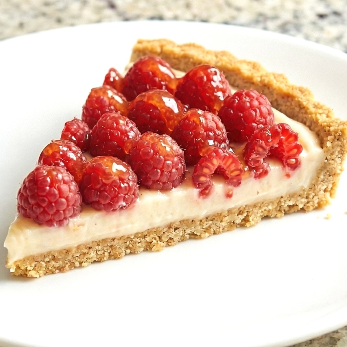 Arrange the fresh raspberries in a decorative circular pattern on top of the filling.