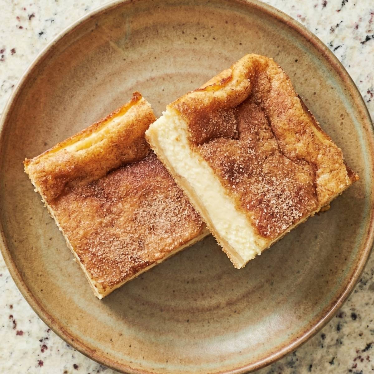 Brush the top with melted butter. Mix 1/4 cup sugar and the cinnamon together, then sprinkle evenly over the buttered top.