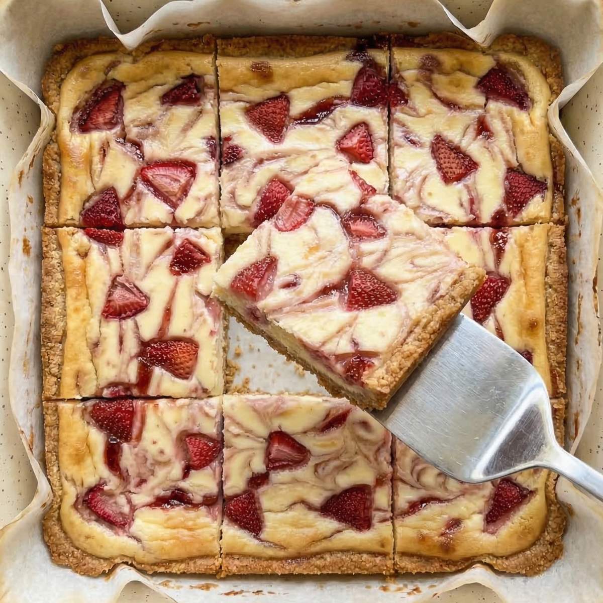 Keyword: almond flour, cheesecake bars, gluten-free, strawberry dessert