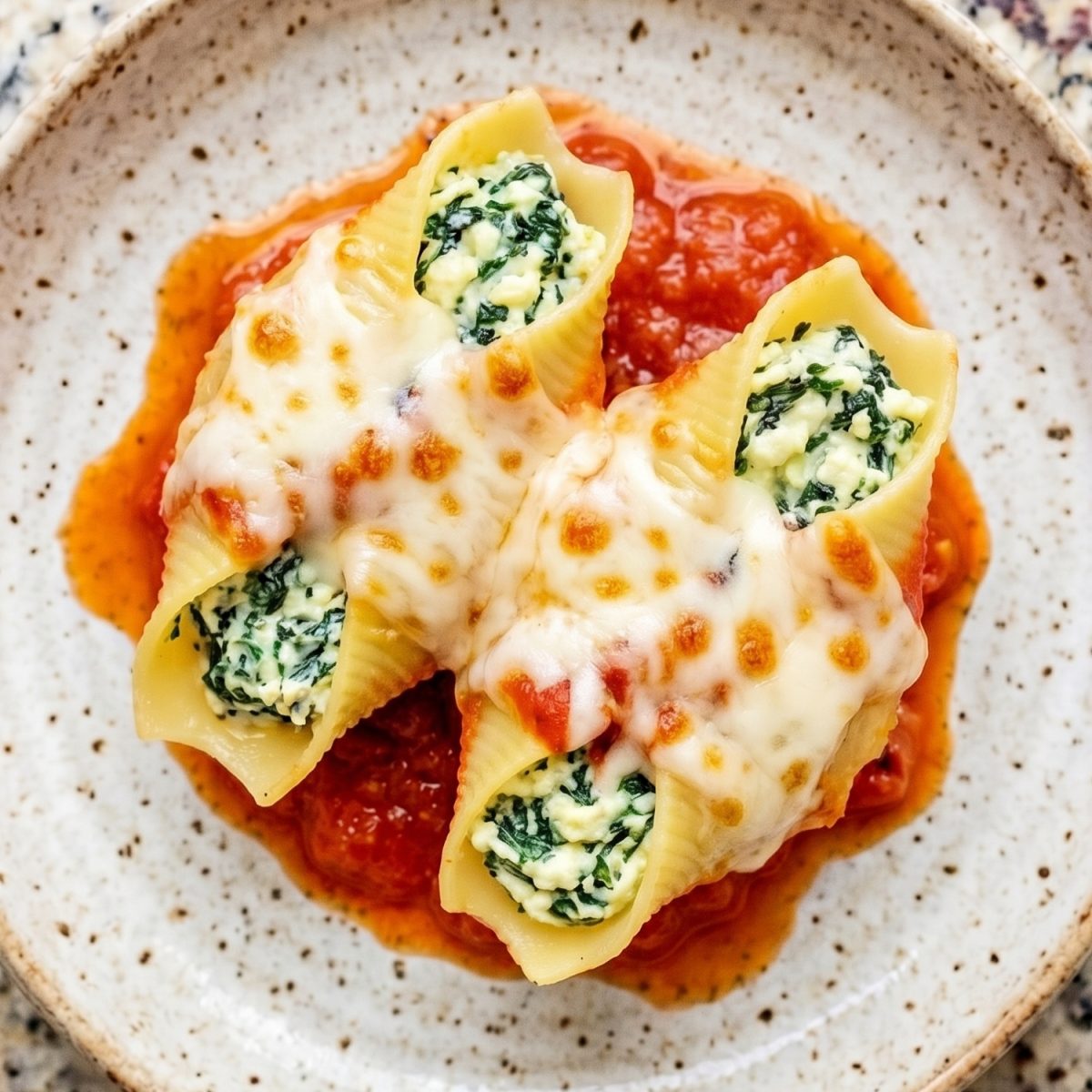 Spoon about 2 tablespoons of the ricotta filling into each cooked shell. Arrange the stuffed shells in a single layer in the baking dish, open side up.