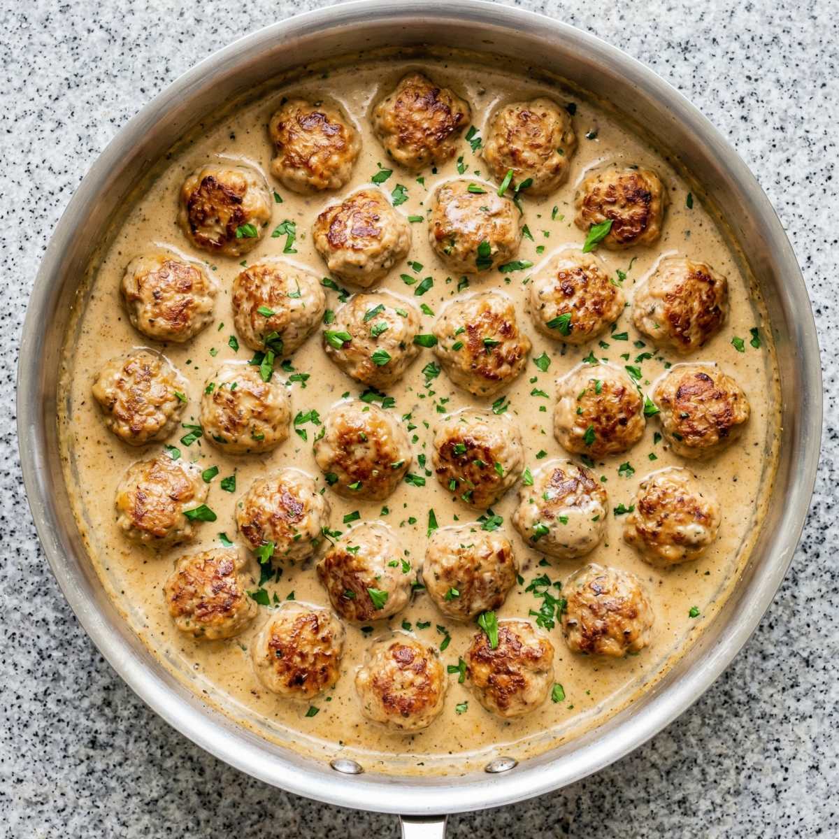 Return the meatballs to the skillet, nestling them into the sauce. Cover and simmer on low for 15 to 18 minutes, stirring gently once or twice, until the meatballs are cooked through and the sauce has thickened.
